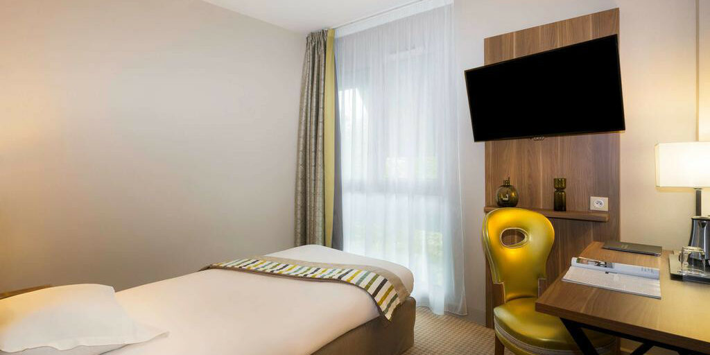 Nos chambres Single offrent une literie haut de gamme dans une ambiance chaleureuse et chic inspirée de l’univers du cheval, idéales pour un séjour confortable en voyage d’affaires à Chantilly.
