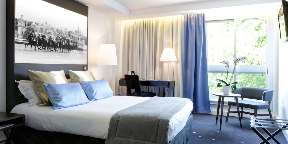 Situées au deuxième étage de l’hôtel, nos chambres Supérieures offrent une literie haut de gamme dans une ambiance chaleureuse et chic inspirée de l’univers du cheval, idéales pour un séjour confortable et raffiné à Chantilly.