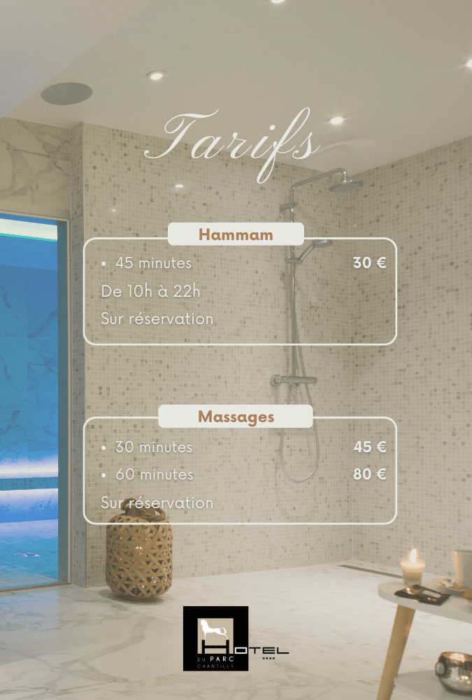 Offrez-vous un moment de pure sérénité grâce à une séance de hammam ou massage, seul ou en duo, et laissez les tensions s’évanouir dans une atmosphère apaisante.